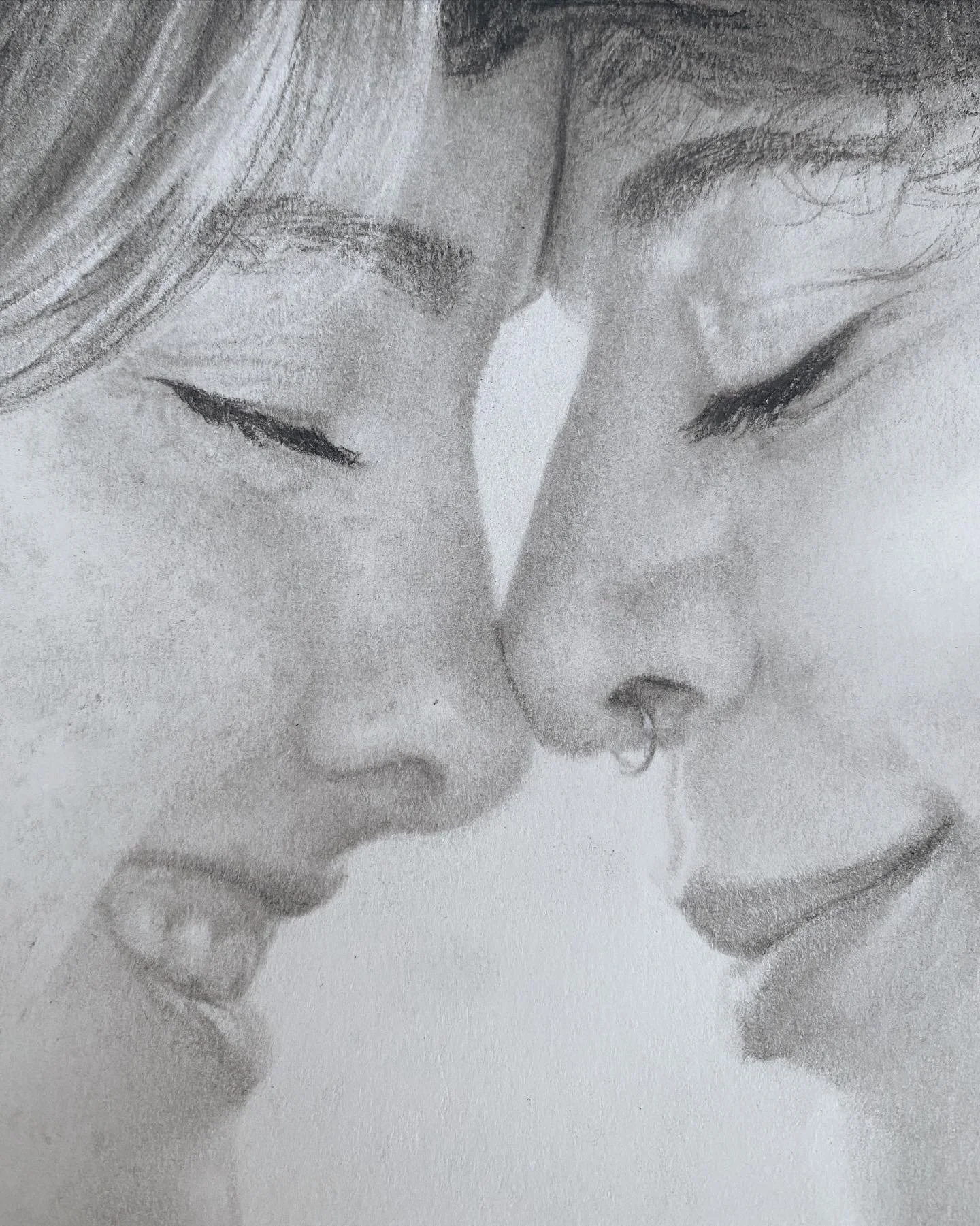 “Sine Qua Non” || charcoal and metallic colored pencil || 18x24” || 2024